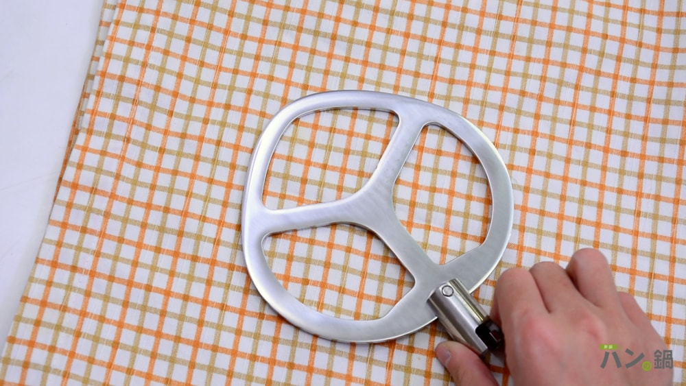沒把手的鋼盆在要刮剛或取料時會比較沒有施力點可以抓住鋼盆,每根手指頭都要緊緊咬住鋼盆、需要比較用力,也有可能手指會接觸到食材。