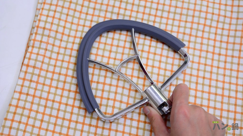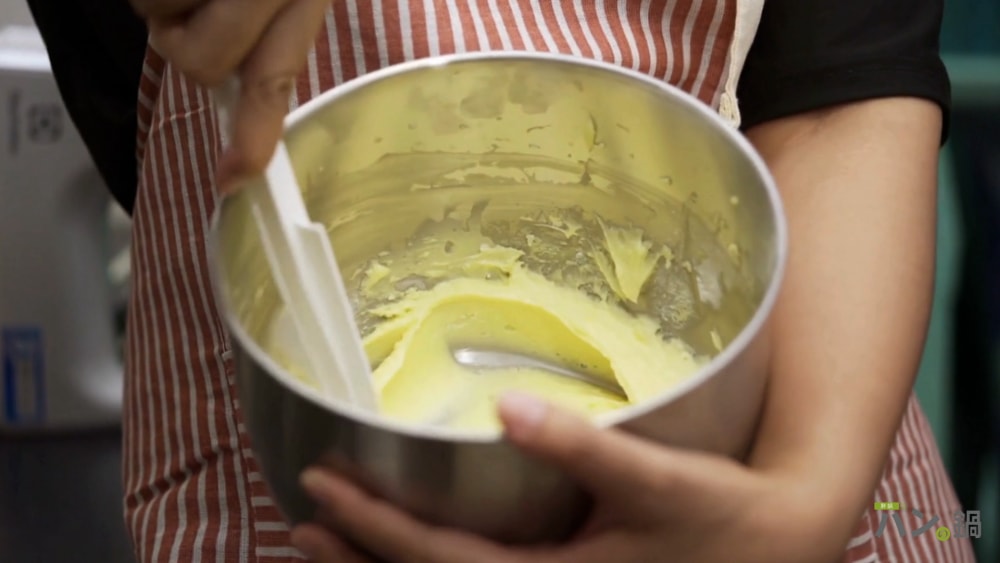 這時候攪拌勾的上蓋,可以避免黑色物質掉落到麵團中。