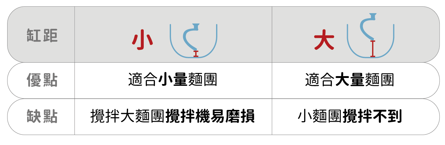 【了解你的攪拌機,事半功倍!】攪拌機如何快速上手 2 則留言 / 攪拌機 / 作者: breadpan 目錄 一、問,問食譜二、麵團望、聞、切三、心法應用四、終極奧義五、總結 如何快速上手攪拌機: 持續的觀察並記錄攪拌機及麵糰的狀態,是成為烘焙達人的必經過程。對於做麵包來說,麵糰就像是蓋房子最基礎的鋼筋水泥,有穩固的結構,對於麵包的外觀能有更高的掌握度,加上適合的食材選擇、配合適當的爐溫與整形手法,就能完成一個預期內的麵包。而新手最容易犯的失誤,就是以為只要按照食譜書的配方、建議檔速、攪拌時間來操作就可以做成功,往往會發現攪拌效果不佳,卻找不到原因。以下的分析主要是針對胖鍋MX-505P的機型說明,也能適用於其他攪拌機,但粉量、轉速烘友須自行評估。 小編現在把烘焙幫失傳多年的打勾棒法,再重新傳授給大家。以下的判斷方式可以用在各種的攪拌機上,但粉量、轉速就需要自行調整囉。廢話不多說、我們現在就用胖鍋攪拌機來示範說明。打勾棒法的心法:一共有四大心法:望、聞、問、切 一、問,問食譜 今天不論是想要做饅頭、高糖油麵包、低糖油歐包還是油酥餅的麵糰,每種的處理方式都不盡相同。我們要先來了解,你的攪拌機有幾段轉速,哪些段速是適用在麵糰、內餡、蛋白,每種食材又是搭配哪一種攪拌器?分別可以操作多少容量?如果有不確定的狀況記得詢問您的攪拌機品牌商,千萬不要超載使用造成機器損壞! 1-1 選擇適合的攪拌器 常見的有三種攪拌器,有圓圓的攪拌球、細長的攪拌鉤跟扇形的攪拌槳,各自都有不一樣的功能。 ◆ 攪拌球:打發蛋白使用。◆ 攪拌勾:攪拌鉤通常會拿來攪打西式麵包麵糰、中式饅頭。◆ 攪拌槳:主要用於打泥狀、內餡食材。若是你的乾粉低於150克,也可以考慮用矽膠刮板攪拌槳。那打勾棒法主要是分享攪拌麵糰的部分,所以攪拌球就先丟一邊不討論 攪拌槳相比攪拌麵團的攪拌鉤:攪拌鉤的鈎型設計是屬於流線型的,在施力上是帶有緩衝、且由遠到近的施力,但槳型在受力上會是比較直接近距離的揉壓、沒有緩衝,反作用力也相對的高很多,因為槳型的設計主要是用在比較軟的內餡,而麵糰的硬度是大於內餡的,如果攪拌槳用在麵糰上,攪拌機的負載會大很多,所以轉速不能太快,份量也不能太多,這樣才可以給予機器較多的緩衝,也避免攪拌機磨損過大。 1-2 轉速的調整 最需要注意的的重點有麵團的含水量與麵粉量、以及搭配使用的攪拌器,跟各自合適的轉速 轉速快,比較能勾起較軟的麵糰。速度快效率較好,但可能會造成機器磨損較高。轉速慢,可能無法勾起麵糰,無法有效攪拌。速度慢效率也比較差。對於胖鍋MX-505P的轉速、粉量、含水量我們可以參考下圖,使用合適的攪拌速度,增加攪拌機效率及延長使用壽命。 ▼攪拌鉤-粗款 ▼攪拌鉤-大蓋細款 ▼攪拌鉤-小蓋細款 ▼矽膠刮板攪拌槳 ▼粗鉤 中等粉量 ▼細鉤 中等粉量 ◆ 正常麵糰一般常見的麵團分量為250-600克的乾粉,含水量會在62-66%左右,這種時候會用攪拌鉤操作,通常轉速會在2-4檔做調整。 ▼粗鉤 較多粉量 ▼細鉤 較多粉量 ◆ 略大麵糰當你在攪打份量較多,以胖鍋攪拌機大約是乾粉量600克以上或是需要攪打比較乾的麵團(通常含水量62%以下)。建議把攪拌機的轉速調慢一點,原本可能可以使用4檔,降低到3檔攪拌,讓機器減少磨損。雖然會需要比較久的攪拌時間,但可以降低攪拌機過載的情況,當然最好的方式是直接減少每次的粉量,分次去攪拌,不但攪拌效果不會被影響、也能避免機器超載的風險。 ▼粗鉤 較少粉量 ▼細鉤 較少粉量 (對照上圖)▲ 可能有黏缸的情況,可以刮缸1-2次輔助成團攪拌。■ 麵團重量較重,因此攪拌到麵團離缸時,請務必降低轉速。★ 麵團較為乾燥,可能在攪拌過程無法成團,可以停機抬頭,手捏麵糰輔助成團。! 水分50%以下的麵團,未成團之前可以2-3速,成團後麵糰較乾硬,容易造成機器損壞,必須用1速執行。 ◆ 較小麵糰而份量較少或是含水量較高(68%以上)的麵團,使用的轉速則會比較快,提高一點轉速,比較能勾起濕軟的麵糰進行有效攪拌,也因為麵糰小或軟,所以比較不會對機器造成過大負載。也可以改用矽膠刮板攪拌槳進行小麵團的攪拌,在矽膠刮板的幫忙之下,會比攪拌鉤更有效的接觸到盆底部,效果更佳哦! 1-3 麵粉特性 我們要瞭解麵粉的使用方式及特性,才能更準確的配合機器使用。 ◆ 高筋麵粉、法國麵粉用於製作麵包及歐包,麵糰的含水量高、需使用較高的轉速甩打到薄膜狀態 ◆ 中筋麵粉通常會製作中式麵團,例如饅頭、包子、麵條類,因為含水率較低、乾硬,所以要特別留意轉速及重量,攪拌的時候並不會像麵包麵糰一樣要求要呈現甩打狀態,主要訴求是麵團需要成團並有三光,麵團攪拌過程是擠壓而非勾住甩打。 ◆ 低筋麵粉通常是製作糕餅類,因為筋性比較弱,麵糰沒有延展性,在攪拌的時候可能比較容易會黏缸,所以如果分量沒那麼多的情況下,可以考慮用帶矽膠刮板的攪拌槳,這樣能更有效的攪拌! 二、麵糰望、聞、切 用你的感觀,用你的超強意念集中在你的視覺、聽覺、觸覺上望就是用你的觀察力聞就是用你的耳朵聽切就是用你的手來摸因為麵粉跟水不斷的在接觸、混合,它的內部狀態就是會無時無刻的在變化,除了仔細觀察麵糰的外觀,還可以用手拉伸麵糰的筋性。攪拌大略的分成四大階段